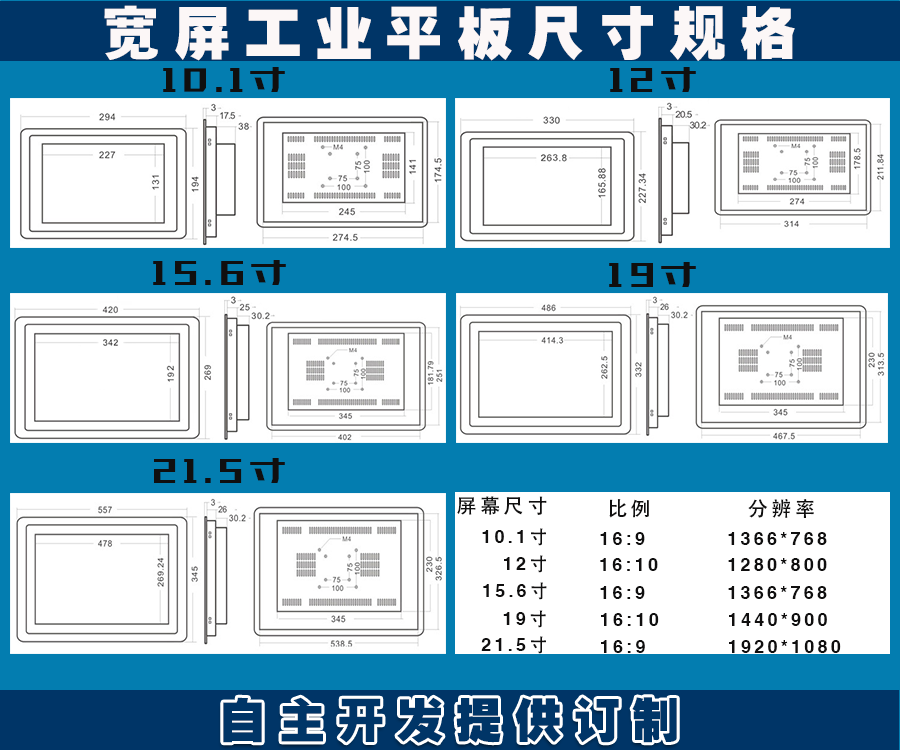 設(shè)備尺寸:10.4寸 12寸 15寸 17寸 19寸 支持定制尺寸