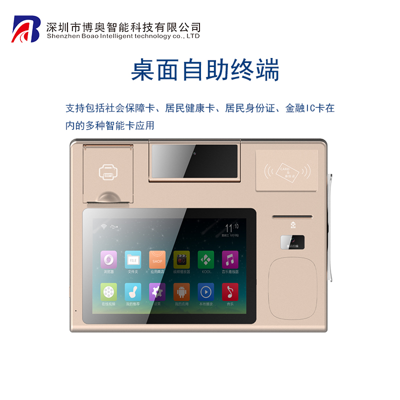 桌面自助終端,是一咱安桌電腦結(jié)算一體機(jī),具有"互聯(lián)網(wǎng)+"金融交易功能,作為面向互聯(lián)網(wǎng)行業(yè)應(yīng)用的一體化設(shè)備,結(jié)合了身份認(rèn)證、生物信息采集、網(wǎng)絡(luò)通信和移動(dòng)應(yīng)用在內(nèi)的多種技術(shù),支持包括社會(huì)保障卡、居民健康卡、居民身份證、金融IC卡在內(nèi)的多種智能卡應(yīng)用,可在政務(wù)多業(yè)務(wù)、集成服務(wù)、醫(yī)院、藥店、基層公共社區(qū)、便利店配備,與互聯(lián)網(wǎng)平臺(tái)相配合,線上線下、有卡無(wú)卡相結(jié)合。便民得民的一體代自助服務(wù)高端設(shè)備。