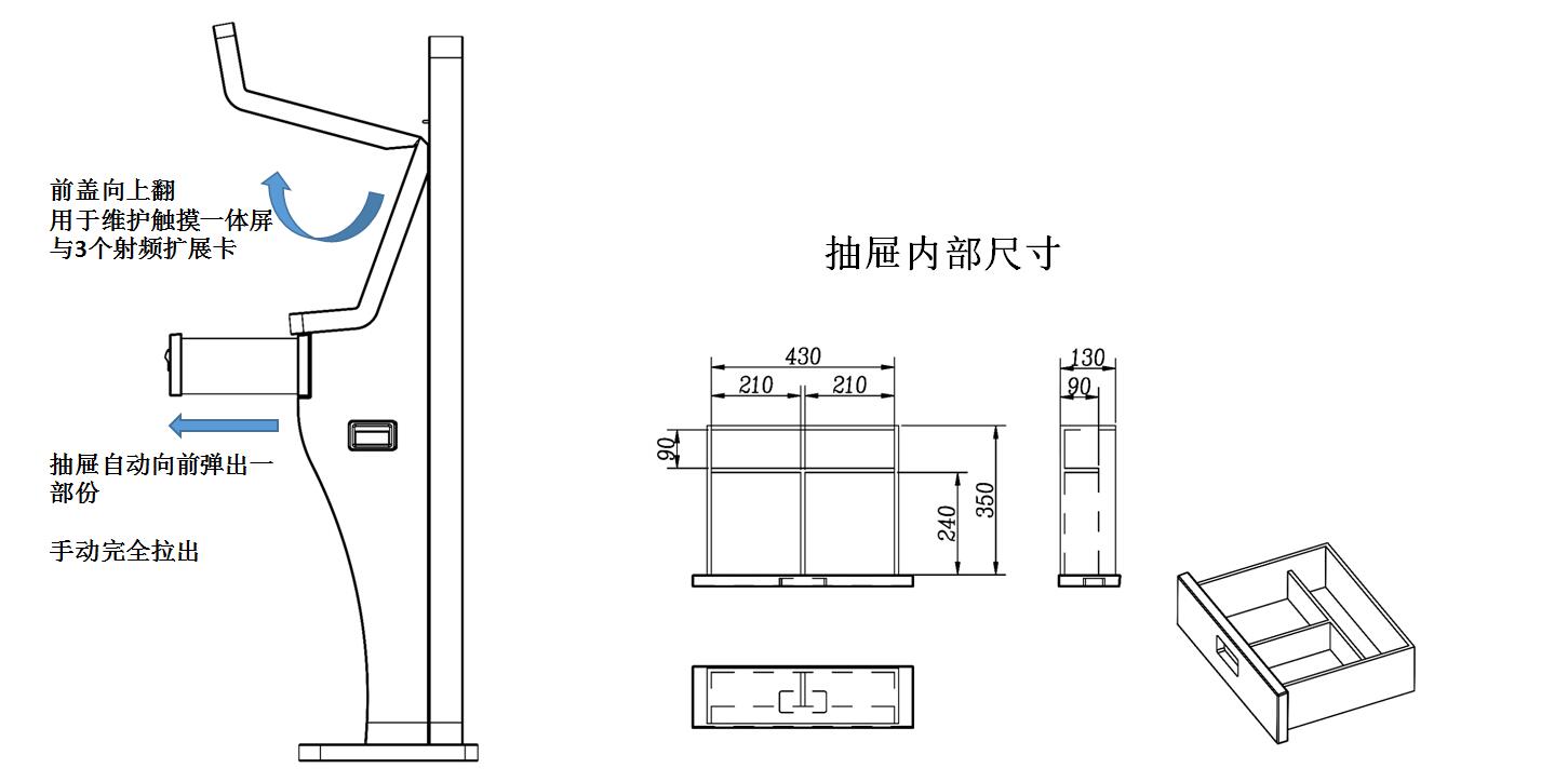 執(zhí)法一體機我公司專為上海檢查院設(shè)計并生產(chǎn)加工的一款執(zhí)法查詢自助一體機,整機符合人體工程設(shè)計,機身大氣,外形精細、新穎、美觀、簡潔,屏幕采用19寸觸顯一體屏,高清雙目活檢攝像頭,可對進出辦事人員進行人臉識別比對,集成身份證讀卡功能,采集身份信息及識別,一體機還配備自動彈開抽屜 ,放置GPS手環(huán),同時可以對多個手環(huán)充電。