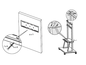 將兩條掛臂用4顆M8的螺絲與觸摸一體機(jī)進(jìn)行緊固連接