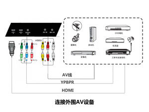 1)將信號線從外部AV設(shè)備的信號輸出端子連接到觸摸一體機(jī)的對應(yīng)的端子上