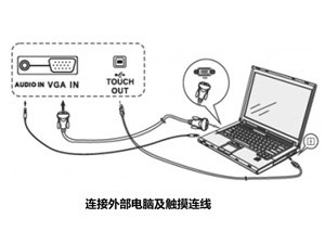 1)用HDMI或VGA線把電腦輸出與觸摸一體機(jī)顯示板輸入相對應(yīng)連接