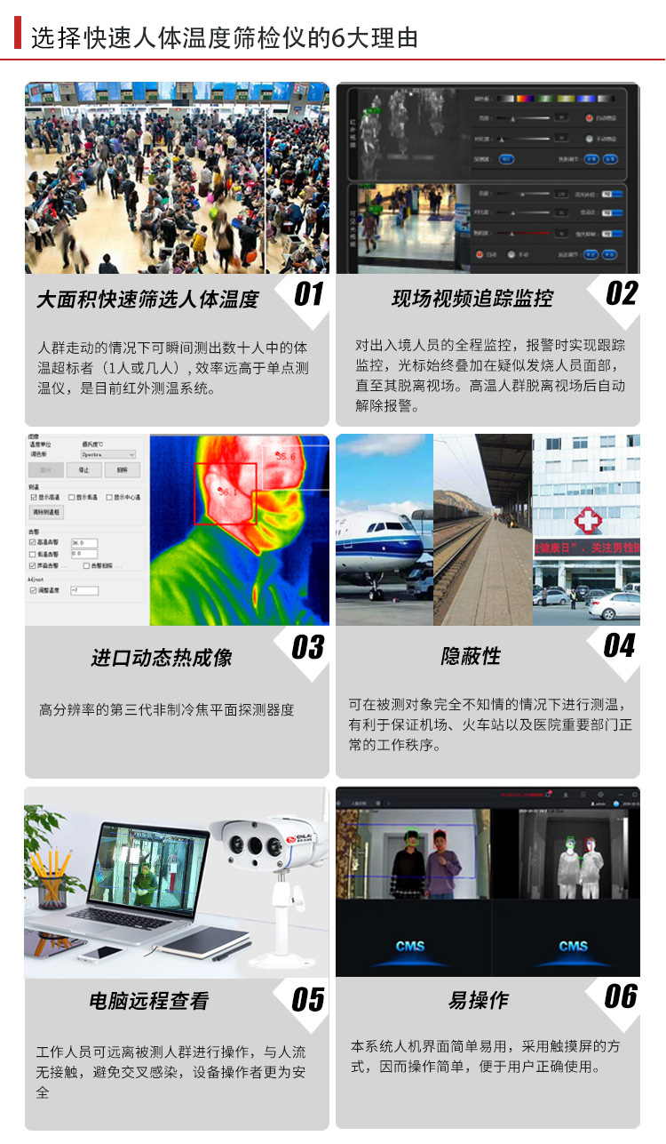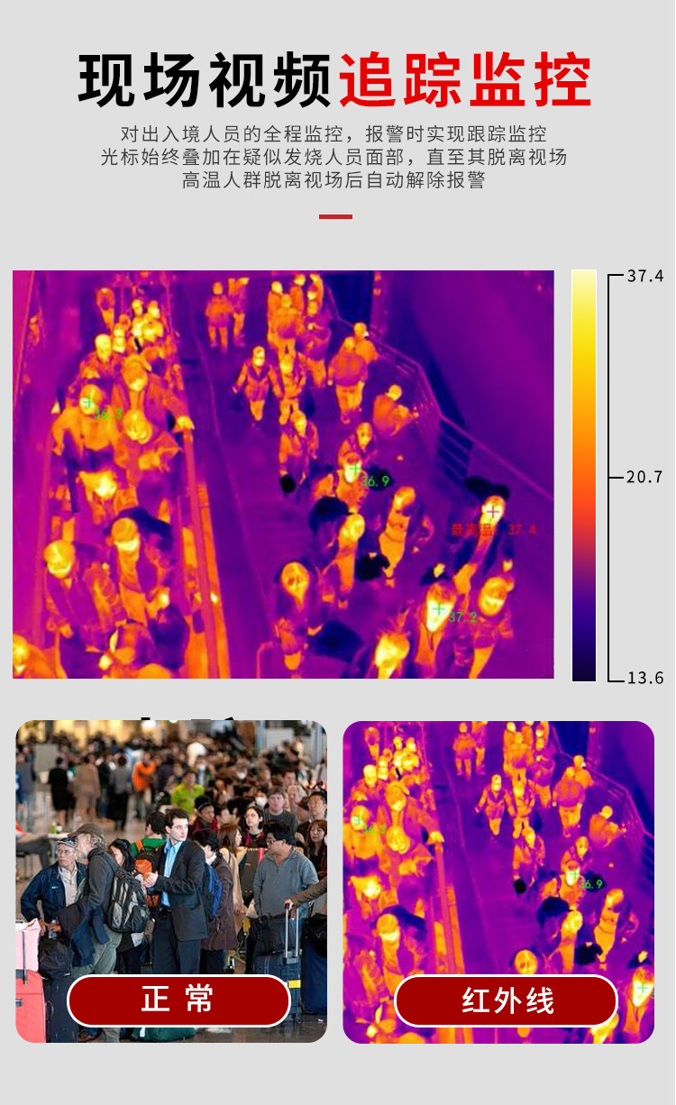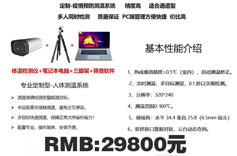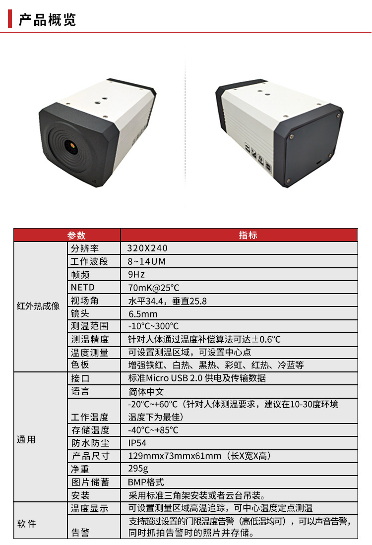 紅外熱成像儀是一款高精度的熱成像,可以實(shí)時(shí)在線測(cè)量目標(biāo)物體的溫度,輸出熱像視頻,查看超溫狀況。搭配不同配套的平臺(tái)軟件,適應(yīng)人體測(cè)溫篩查,本文檔介紹針對(duì)人體測(cè)溫篩查使用方式。