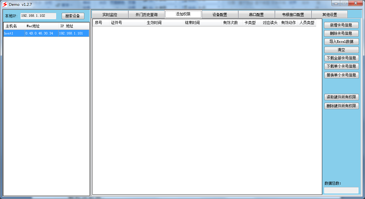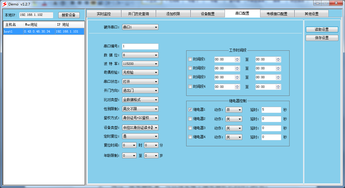 設(shè)備通過(guò)以太網(wǎng)接口與電腦連接,實(shí)現(xiàn)設(shè)備配置,權(quán)限配置,實(shí)時(shí)上報(bào)監(jiān)控,遠(yuǎn)程開(kāi)門(mén),控制器歷史日志下載等。