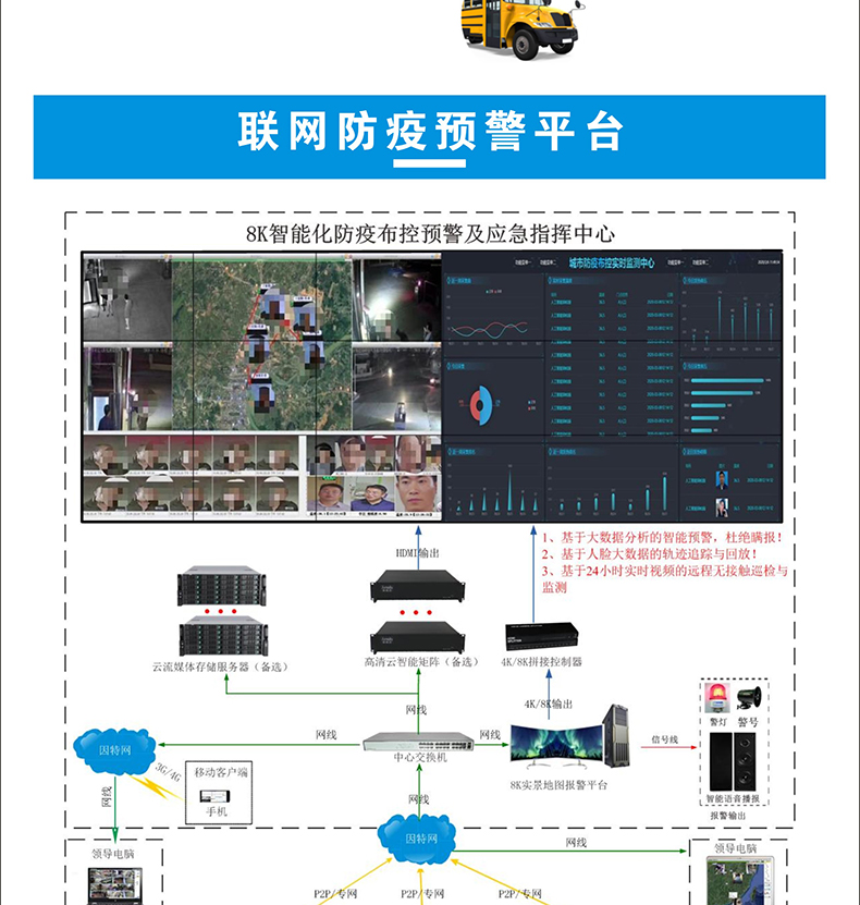 支持有線(xiàn)網(wǎng)絡(luò)/WIFI/4G聯(lián)網(wǎng)到防疫指揮中心平臺(tái)及第三方平臺(tái);