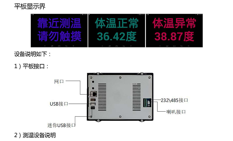 時(shí),就會(huì)顯示體溫異常,發(fā)出報(bào)警聲音;測(cè)溫板上的聯(lián)動(dòng),體溫正常聯(lián)動(dòng)藍(lán)燈及響一下蜂鳴器,打開(kāi)一號(hào)繼電器輸出一般是開(kāi)門(mén)信號(hào),體溫異常聯(lián)動(dòng)紅燈及及持續(xù)響蜂鳴器,打開(kāi)二號(hào)繼電器輸出一般是警燈警鈴,因?yàn)椴簧婕暗桨沧肯到y(tǒng)等上層邏輯,響應(yīng)的速度明顯要快很多。綜上四點(diǎn),速度已經(jīng)可以在0.1秒,但考慮到測(cè)溫結(jié)果的持續(xù)穩(wěn)定性,建議設(shè)置為0.2秒;支持聯(lián)網(wǎng)功能,通過(guò)有線(xiàn)網(wǎng)絡(luò)或者4G/WIFI網(wǎng)絡(luò)直接將數(shù)據(jù)傳送到應(yīng)急指揮中心.