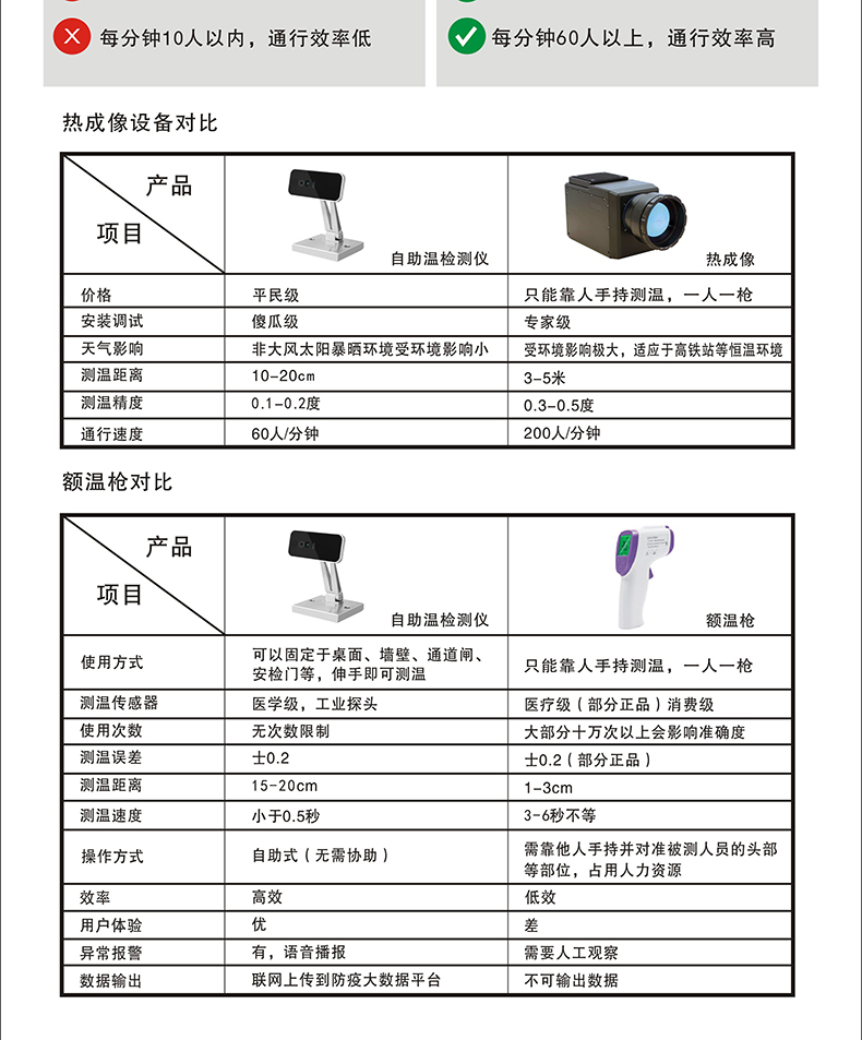 額溫槍最大的問(wèn)題就是人手一槍?zhuān)绻娴臋z測(cè)到有確診人員,持槍人員被再次感染的可能性是相當(dāng)大的,一旦成為無(wú)癥狀感染者,就可能影響一個(gè)小區(qū),一個(gè)學(xué)校的大部分人員,成為超級(jí)傳播者。我們采用定點(diǎn),或是移動(dòng)的自助測(cè)溫點(diǎn),測(cè)溫的過(guò)程不需要由安檢人員近距離接觸,只需要遠(yuǎn)遠(yuǎn)的在15-30米范圍表示關(guān)注即可,只有出現(xiàn)異常人員現(xiàn)場(chǎng)進(jìn)行處理就好了。
