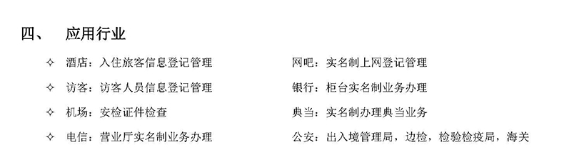 4) 識(shí)讀種證種類多而全:可識(shí)讀符合國際民航組織ICAO DOC 9303國際標(biāo)準(zhǔn)的電子護(hù)照、電子回鄉(xiāng)證、電子臺(tái)胞證等多種國內(nèi)外的旅行證件;還可以識(shí)別身份證、駕駛證、行駛證、港澳通行證、臺(tái)灣通行證等幾十種身份證件;