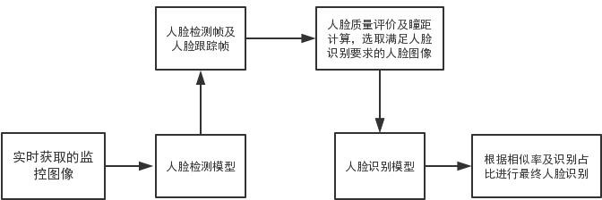 識別過程包括人臉質(zhì)量檢測、特征提取、人臉?biāo)阉?、活體檢測等,前一個(gè)步驟通過,才能執(zhí)行后一個(gè)步驟。所有步驟都執(zhí)行通過,人臉識別才完成。