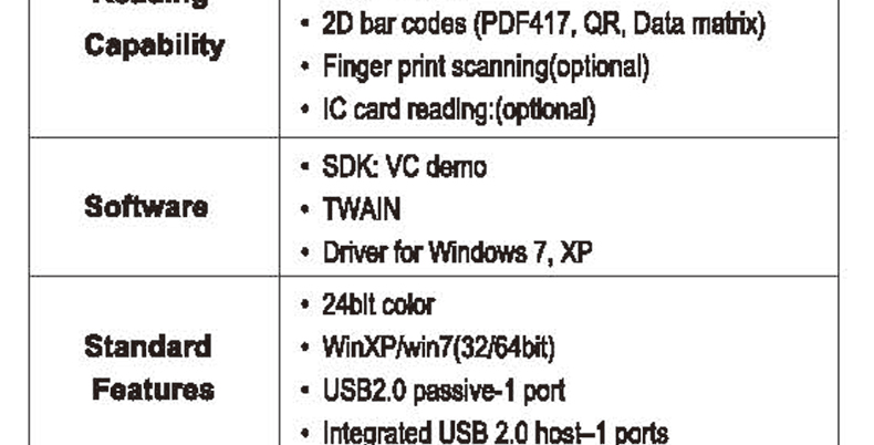 This is a high resolution document scanner for access control to speedread and verify ID documents like Passport, visas, identity cards, driver’s license, insurance card, medical card, so as to speed up the work flow and improve the work efficiency. It fulfills the globally growing needs for automated