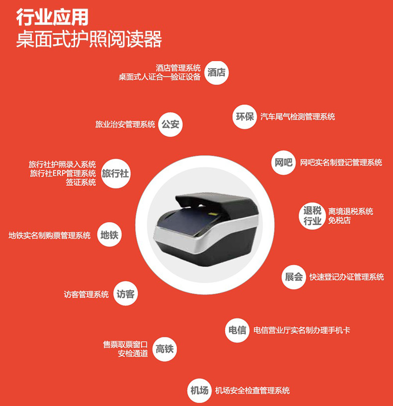 ? ? ? ?可選配國內二代證讀卡器,擴大應用領域。支持證件自動感應觸發(fā),自動分類,操作簡單方便,非常適合在酒店、邊防檢查站、通關口岸、海關、機場、出入境管理局、涉外旅行社等場所應用。