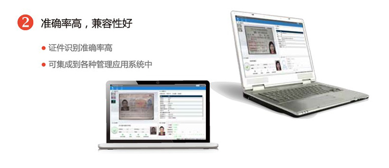 2)?? 準確率高,兼容性好:證件識別準確率高達 99.8%,可集成到各種管理應用系統(tǒng)中;