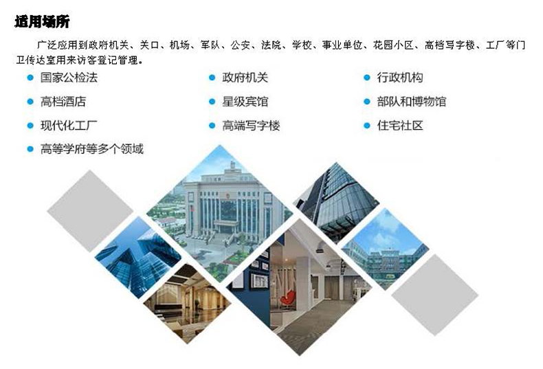 1、刷身份證(二代/三代證)自動(dòng)讀取信息, 2、現(xiàn)場(chǎng)拍照人像采集并保存。支持人證比對(duì) 3、來(lái)訪單位、來(lái)訪事由、車(chē)輛、攜帶物品等信息登記 。 4、被訪人信息登記:(1)被訪人姓名模糊查詢,輸入姓名的第一個(gè)字、或首字母、手機(jī)號(hào)、電話號(hào)碼、模糊查詢,系統(tǒng)自動(dòng)帶出相應(yīng)的被訪人信息;(2)選擇被訪對(duì)象,多人來(lái)訪快速登記; 5、IC常訪卡快速登記;來(lái)訪預(yù)約登記管理。 6、提醒功能:身份證真假識(shí)別、黑名單提醒、VIP訪客提醒; 當(dāng)日訪客人數(shù)、訪客離開(kāi)人數(shù)、未離開(kāi)人數(shù)自動(dòng)顯示;訪客離開(kāi)/未離開(kāi)記錄區(qū)別顯示;常訪卡有效期提醒、離開(kāi)未登記提醒、訪客來(lái)訪歷史提醒。 7、打印訪客單或發(fā)放IC卡,身份證,二維碼;登記數(shù)據(jù)保存到數(shù)據(jù)庫(kù) 8、★支持多臺(tái)聯(lián)網(wǎng),人證比對(duì),刷卡抓拍,查看前后10秒錄像,實(shí)時(shí)監(jiān)控查看 9、支持訪客信息臨時(shí)保存,等需要時(shí),再快速顯示。 10、支持訪客及被訪人短信通知,可更改通知內(nèi)容模板 11、★微信預(yù)約界面可以自定義字段,最多可設(shè)置20個(gè)字段,功能,微信審核功能,微信查詢預(yù)約記錄(微信預(yù)約功能需要單獨(dú)購(gòu)買(mǎi)公眾號(hào)預(yù)約平臺(tái))。 12、★可以網(wǎng)頁(yè)查詢微信預(yù)約記錄,可以導(dǎo)出記錄 13、★可以網(wǎng)頁(yè)導(dǎo)入微信被訪人員工信息 14、★可添加??典浵駲C(jī),查看錄像及照片,現(xiàn)場(chǎng)情況一目了然 15、★可自行添加掃描的證件類型號(hào),共有79種證件可以快速識(shí)別錄入,不需要手工輸入,效率超快。 16、★查詢統(tǒng)計(jì)導(dǎo)出界面的字段,可以自行添加刪除,把你用不上的字段可以直接移除。 17、★可以批量導(dǎo)入被訪人信息,批量添加內(nèi)部人員權(quán)限到門(mén)禁 18、★觸屏輸入法,可以輸入中文,字母,數(shù)字,手寫(xiě),英文(非系統(tǒng)自帶鍵盤(pán),采用蘋(píng)果風(fēng)格,讓輸入更清松) 19、★可以自定義界面風(fēng)格圖,LOGO,標(biāo)題 20、登記時(shí),提示第幾次來(lái)訪 21、登記界面,可以多個(gè)攝像頭之間切換 22、電話自動(dòng)撥號(hào)(需購(gòu)買(mǎi)撥號(hào)器) 23、刷身份證自動(dòng)比對(duì)人臉 24、二維碼讀頭支持掃微信預(yù)約二維碼 |