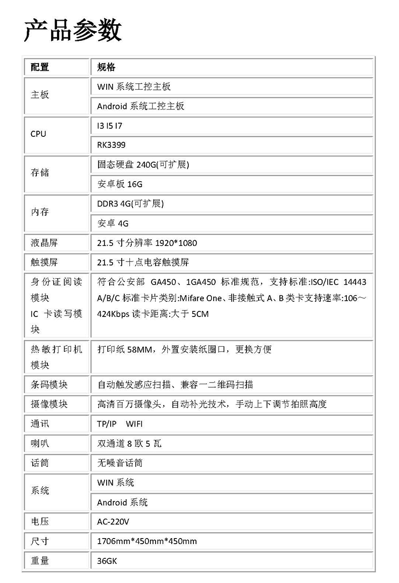 產品名稱:21.5寸多功能自助終端機