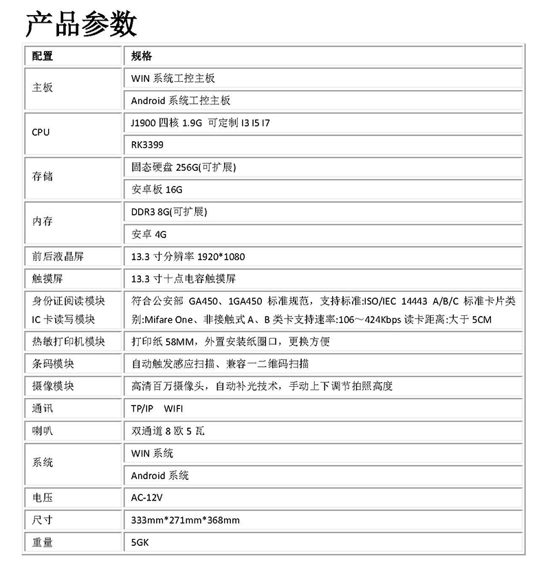 功 能:臉識別、身份證讀取、銀行卡讀取、醫(yī)療卡讀取、社??ㄗx取、打印、二維條碼掃描