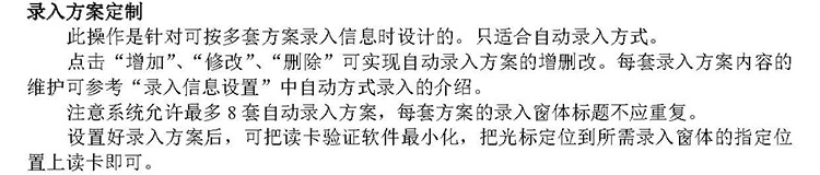 注意系統(tǒng)允許最多8套自動(dòng)錄入方案,每套方案的錄入窗體標(biāo)題不應(yīng)重復(fù)。