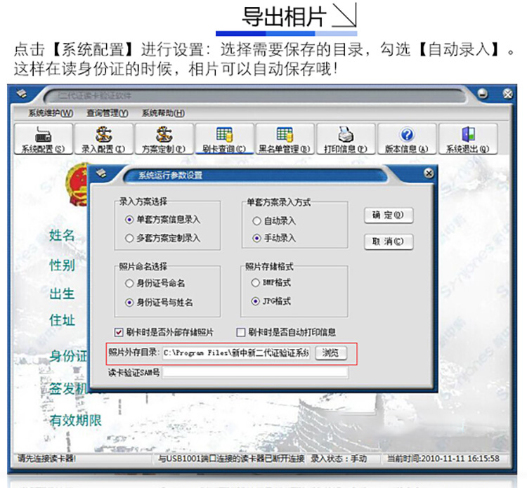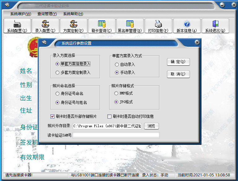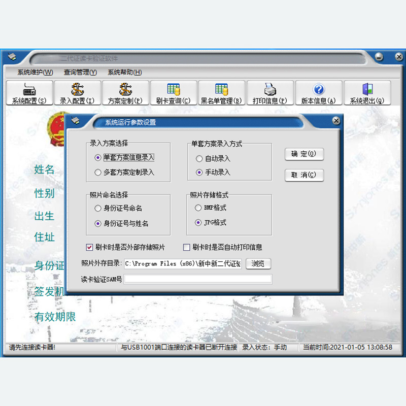上述設(shè)置,應(yīng)在正式二代證讀卡錄入前設(shè)置好,錄入?yún)?shù)一經(jīng)設(shè)置,可立刻生效。