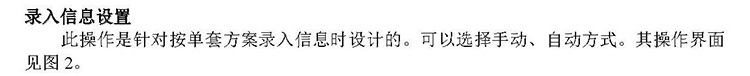 此操作是針對(duì)按單套方案錄入信息時(shí)設(shè)計(jì)的??梢赃x擇手動(dòng)、自動(dòng)方式。其操作界面見圖2。