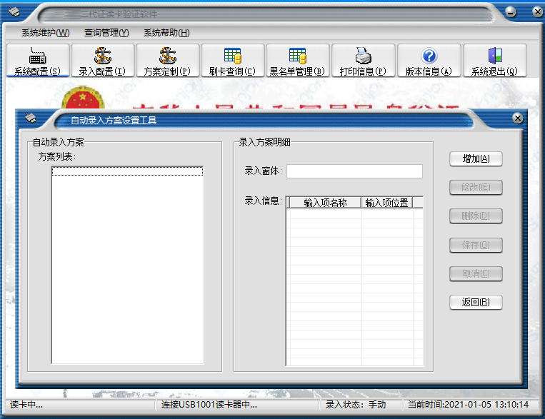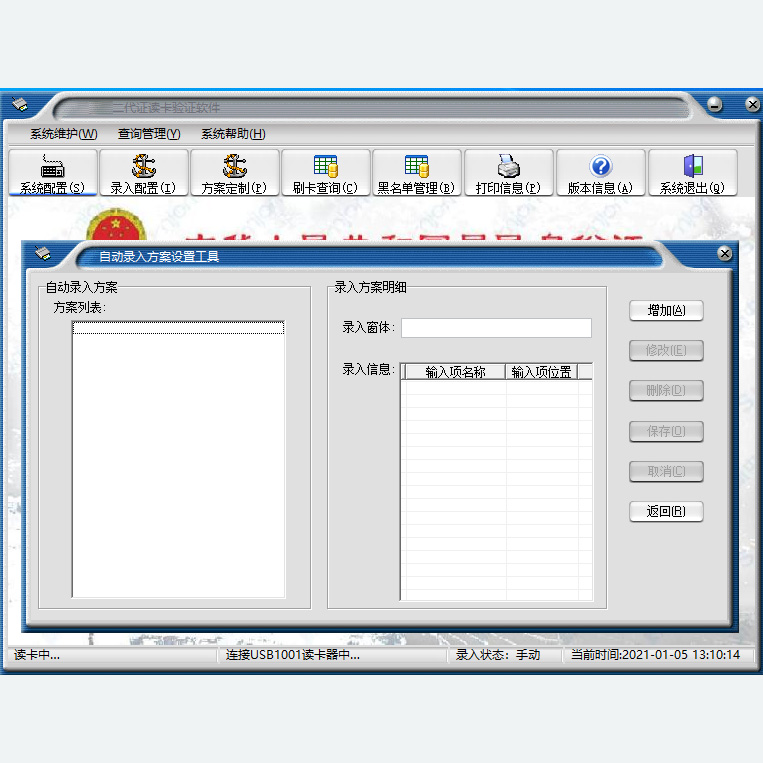 所謂自動(dòng)錄入就是讀取二代證信息時(shí),在信息顯示的同時(shí),自動(dòng)把方案所定義的信息錄入到相關(guān)應(yīng)用程序的指定窗體中。