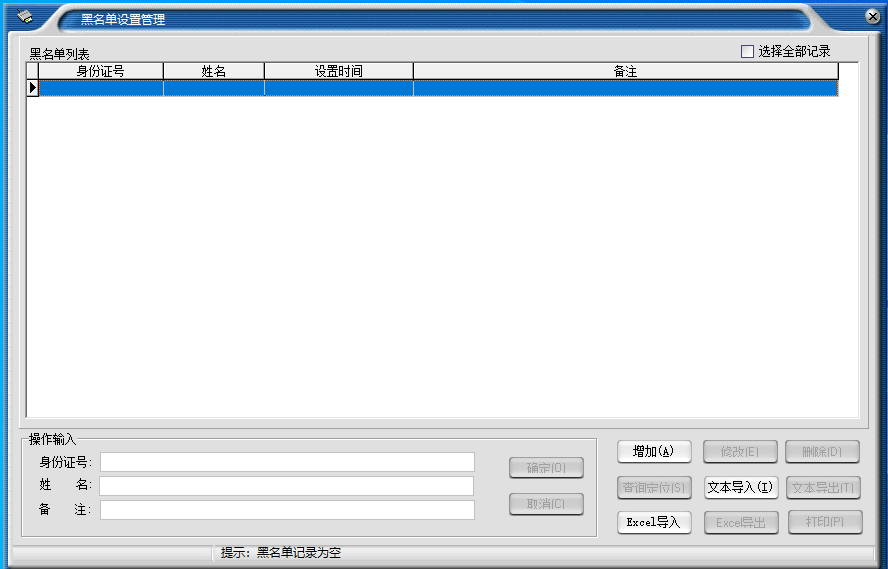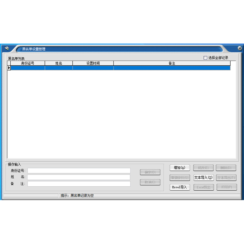 黑名單信息除可以打印外,還可按文本、Excel兩種格式文件輸出。