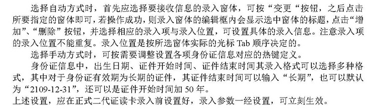 所謂手動(dòng)錄入就是讀取二代證信息后,可按在相關(guān)應(yīng)用程序的窗體中按預(yù)先定義的熱鍵通過(guò)鍵盤錄入所設(shè)置的信息。