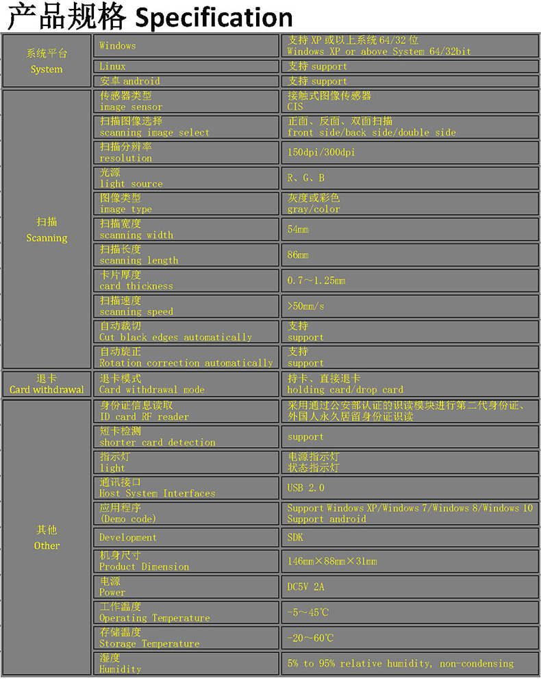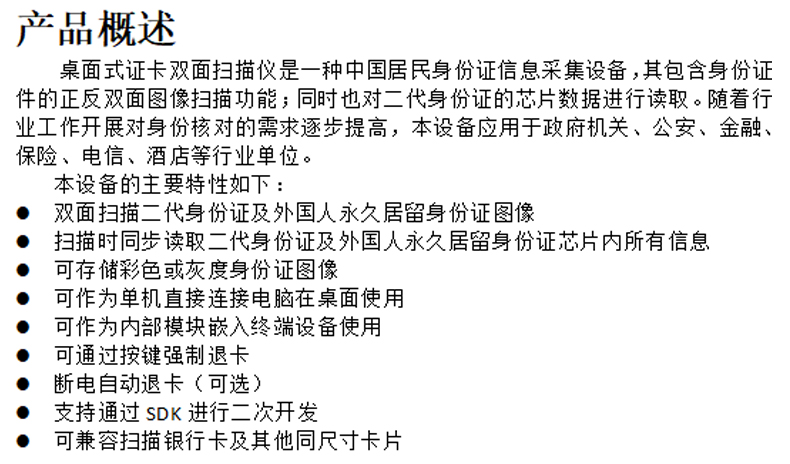 l 雙面掃描二代身份證及外國人永久居留身份證圖像