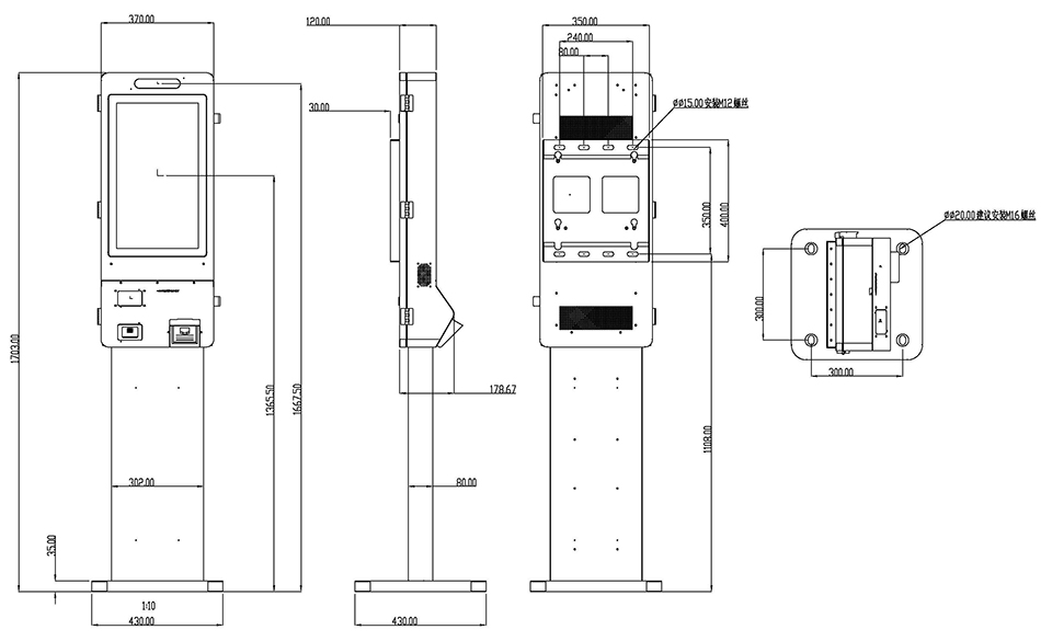 21.5寸室外多功能戶外一體機(jī)安裝方式支持壁掛和落地(立式)兩種方式,集成21.5寸高清液晶屏和室外專用電容觸摸屏;寬動態(tài)雙目攝像頭 ;身份證和IC卡讀卡器;熱敏打印機(jī);條碼掃描,RK3399工業(yè)主板等模塊。