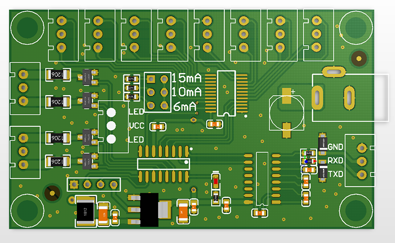 ? ? ? ?目前市場(chǎng)上所用終端機(jī)都是非標(biāo)產(chǎn)品以定制為主,終端機(jī)數(shù)量不多,多則幾百臺(tái),少則一兩臺(tái),因此終端機(jī)廠家面臨一些配件采購難的窘境,單獨(dú)投入開發(fā)又不劃算,比如指示燈控制板;博奧智能針對(duì)此窘境為了終端機(jī)廠家方便采購,開發(fā)了一款12路RS232串口控制板,主要控制LED指標(biāo)燈,此款產(chǎn)品可以控制雙色LED指示燈,性能穩(wěn)定,體積小,方便安裝;可以應(yīng)用到各種自助終端機(jī)上,免費(fèi)提供指令集及技術(shù)支持,博奧智能根據(jù)客戶需求免費(fèi)提供定制服務(wù)。