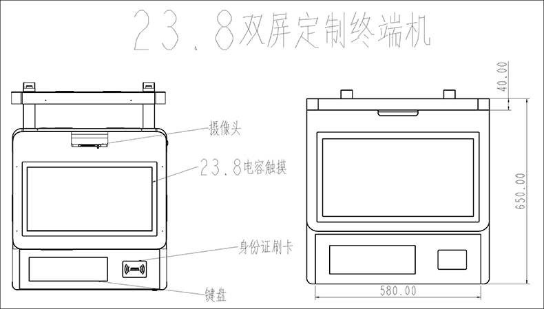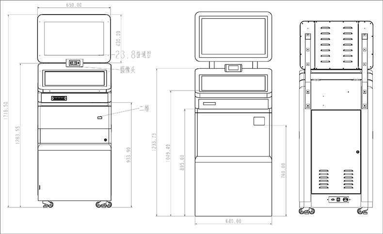 23.8寸自助終端機(jī)美觀大方,外殼采用鈑金烤漆工藝,集成雙屏23.8寸高清液晶屏,可上下調(diào)節(jié)雙目攝像頭,發(fā)卡模塊,身份證閱讀器,鍵盤等模塊,可配合系統(tǒng)集成軟件開發(fā)商廣泛用于多種場(chǎng)所,同時(shí)為客戶提供功能外觀結(jié)構(gòu)定制設(shè)計(jì)服務(wù)。