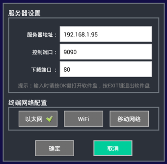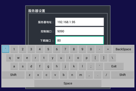 終端服務器設置中的服務器地址為終端需要連接到信息發(fā)布服務器電腦的IP地址(注:需要填寫電腦實際IP地址,請不要填127.0.0.1的地址)或者域名(域名前請不要添加http://前綴);控制端口為終端實時在線控制服務端口號如9090;下載端口為內容下載服務器端口號如80??刂贫丝诤拖螺d端口實際上是服務器端的配置參數(shù),終端需要連接到服務器就必須和服務器的設置端口完全一致。