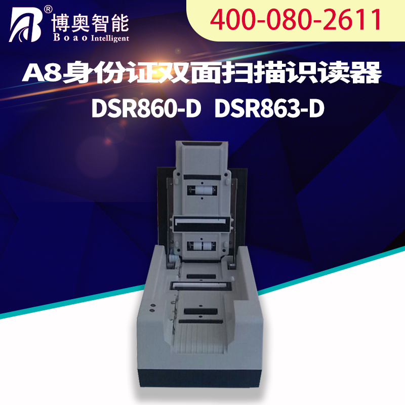 ? ? ? A8雙面掃描識(shí)讀器(DSR860-D) (以下簡(jiǎn)稱DSR860)是一款集成圖像掃描、國(guó)內(nèi)第二代身份證RFID數(shù)據(jù)讀取功能的嵌入式專用雙面掃描設(shè)備。產(chǎn)品設(shè)計(jì)采用光學(xué)分辨率為600dpi的A8接觸式影像傳感器(CIS),掃描精度為8bit(灰度)。通過設(shè)置相應(yīng)的工作模式,設(shè)備能對(duì)符合國(guó)內(nèi)第二代身份證標(biāo)準(zhǔn)的卡片進(jìn)行雙面掃描以及RFID數(shù)據(jù)讀取、解碼。