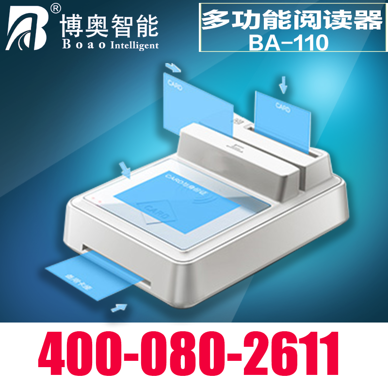 ? ? ? ? ?BA-110多功能身份證閱讀器可以讀取第二三代身份證信息(圖片信息、文字信息、指紋信息)、社??ㄐ畔?、銀行卡信息及讀寫IC卡信息并快速上傳到計算機上,實現快速錄入,比對,識別等功能。