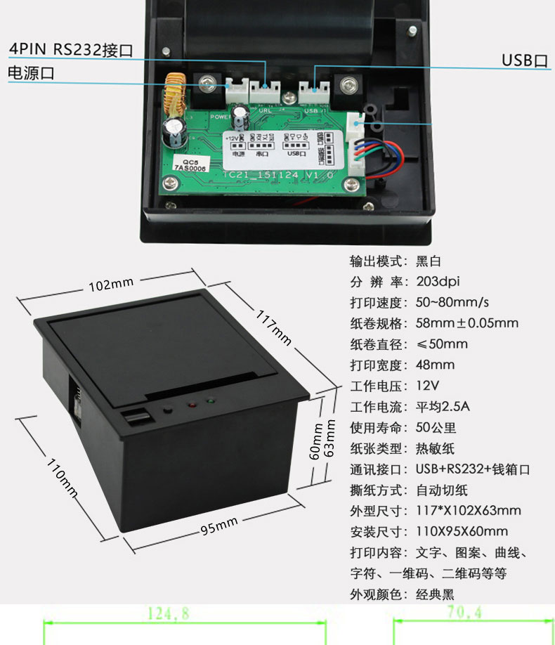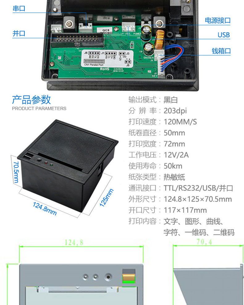 自助終端設備收銀電子稱帶切刀80mm嵌入式面板熱敏打印機PCBA控制板方案定制開發(fā)