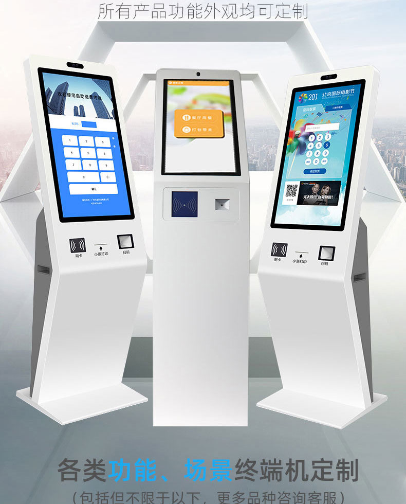 供電腦觸控產(chǎn)品、自助服務(wù)終端的設(shè)計(jì)及生產(chǎn)服務(wù),主要產(chǎn)品自助終端機(jī)、自助打印機(jī)、自助取票機(jī)、自助查詢機(jī)、自助繳費(fèi)機(jī)、自助發(fā)卡機(jī)、自助政務(wù)一體機(jī),產(chǎn)品使用于各個(gè)行業(yè);醫(yī)院、學(xué)校、銀行、酒店、景區(qū)等。。。。。