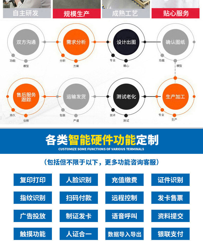 軟件開發(fā)定制:  終端機(jī)應(yīng)用系統(tǒng)、酒店自助入住管理系統(tǒng)、訪客登記管理系統(tǒng)、門禁考勤系統(tǒng)、人臉識(shí)別系統(tǒng)、快遞柜管理系統(tǒng)、APP、小程序、OCR識(shí)別等軟件的開發(fā)定制。
