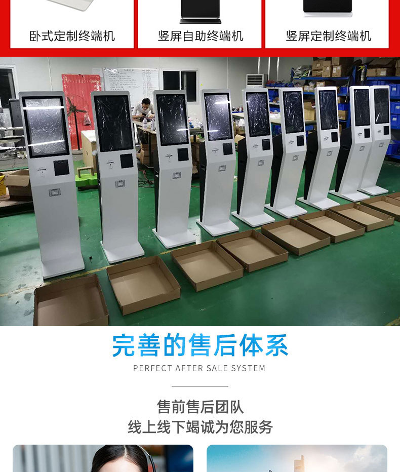 自助終端機(jī)定制:定制各種場景各種款式非標(biāo)終端機(jī);例如訪客機(jī)、景區(qū)自助取票機(jī)、醫(yī)院繳費(fèi)查詢機(jī)、醫(yī)院自助取單機(jī)、社保查詢機(jī)、室內(nèi)外廣告機(jī)、排隊(duì)叫號機(jī)、工控一體機(jī)、電力繳費(fèi)查詢機(jī)、圖書自助銷售機(jī)、便攜式計(jì)算機(jī)、酒店自助入住機(jī)、自助收銀機(jī)等終端。