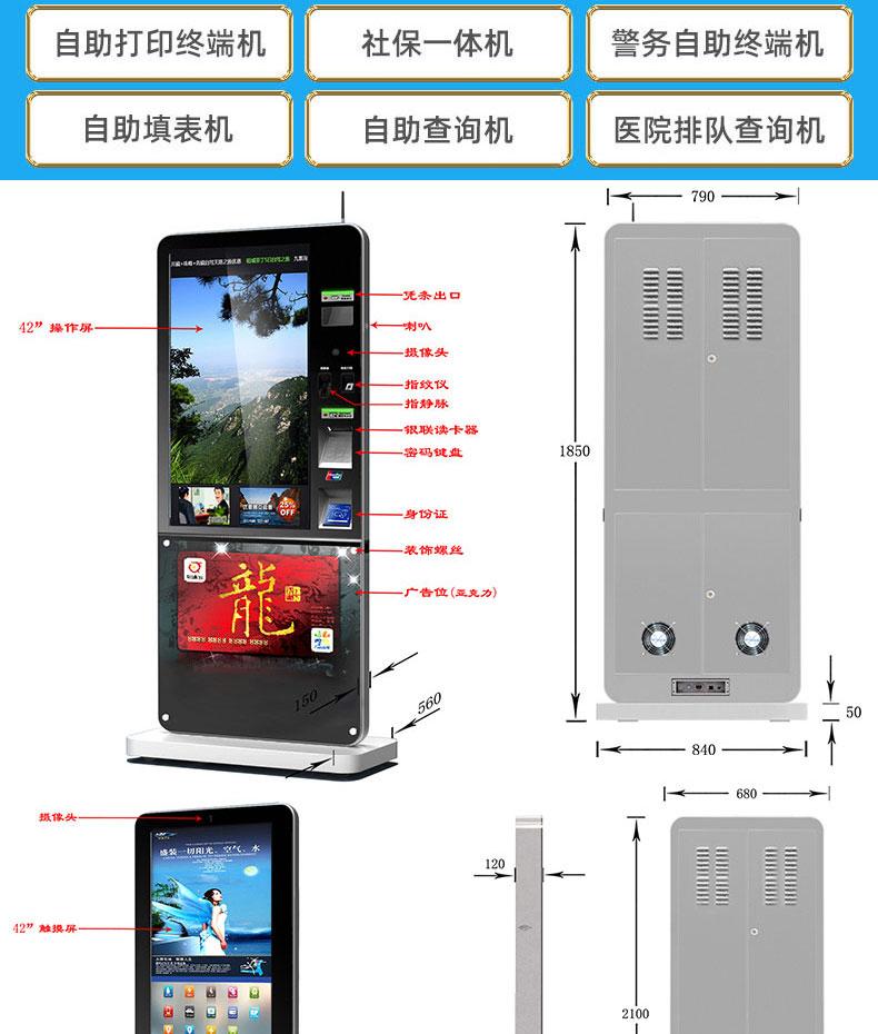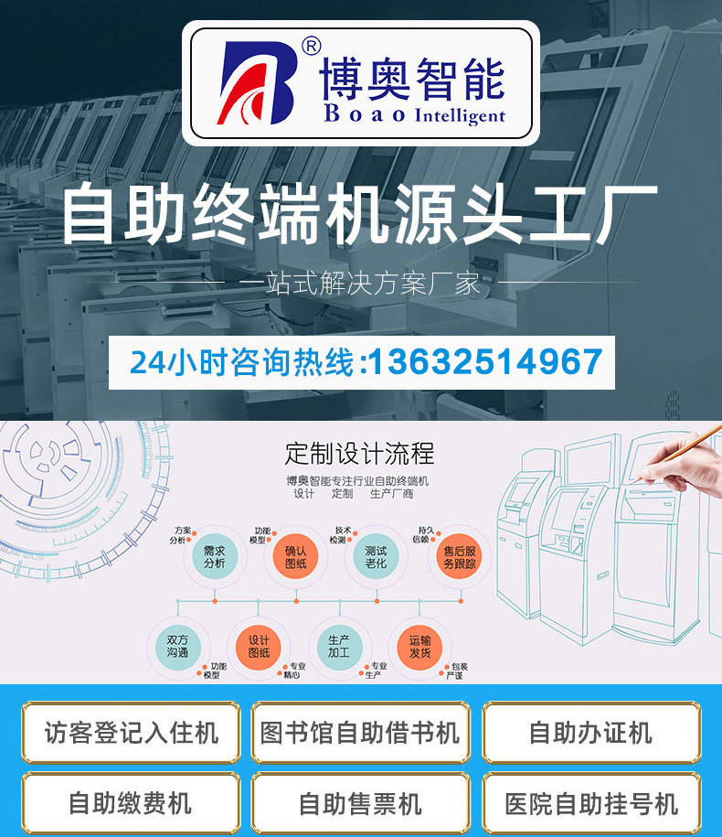 專業(yè)提供電腦觸控產(chǎn)品、自助服務(wù)終端的設(shè)計(jì)及生產(chǎn)服務(wù),主要產(chǎn)品自助終端機(jī)、自助打印機(jī)、自助取票機(jī)、自助查詢機(jī)、自助繳費(fèi)機(jī)、自助發(fā)卡機(jī)、自助政務(wù)一體機(jī),產(chǎn)品使用于各個(gè)行業(yè);醫(yī)院、學(xué)校、銀行、酒店、景區(qū)等。。。。。公司擁有專業(yè)的生產(chǎn)線,嚴(yán)格的質(zhì)量把控。耐心的咨詢服務(wù)團(tuán)隊(duì)及專業(yè)的技術(shù)負(fù)責(zé)團(tuán)體。