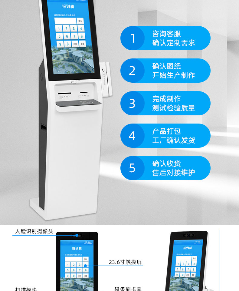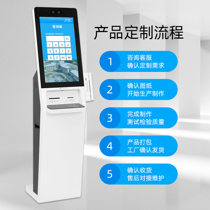 辦事大廳立式自助簽到事務(wù)辦理觸摸一體機排隊叫號智能終端系統(tǒng)開發(fā)