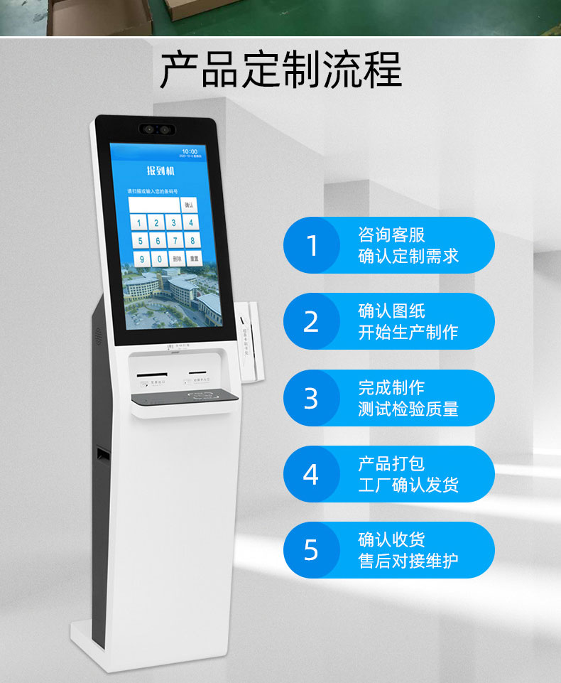 公司成產(chǎn)以“誠信、團結(jié)、務(wù)實、創(chuàng)新”的企業(yè)精神開拓市場、優(yōu)化產(chǎn)品細(xì)節(jié)提供舒適的自助體驗。公司本著“誠信為本,質(zhì)量至上”的取勝之道不斷開發(fā)自助終端在各行業(yè)的應(yīng)用,打造方便快捷的一站式服務(wù)。