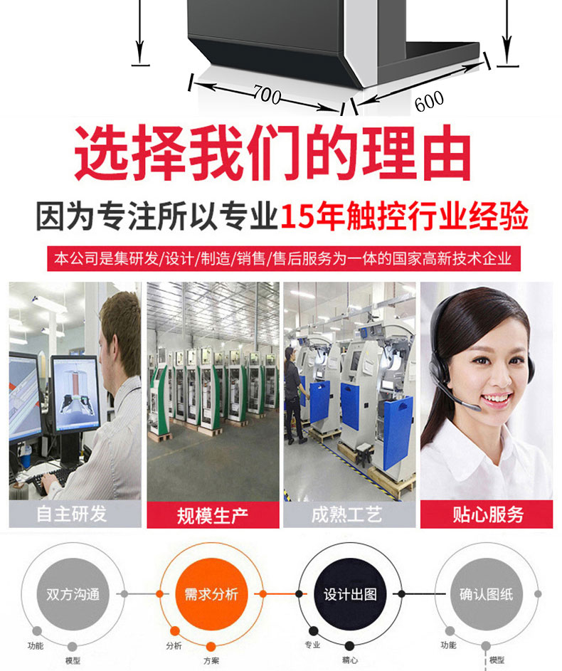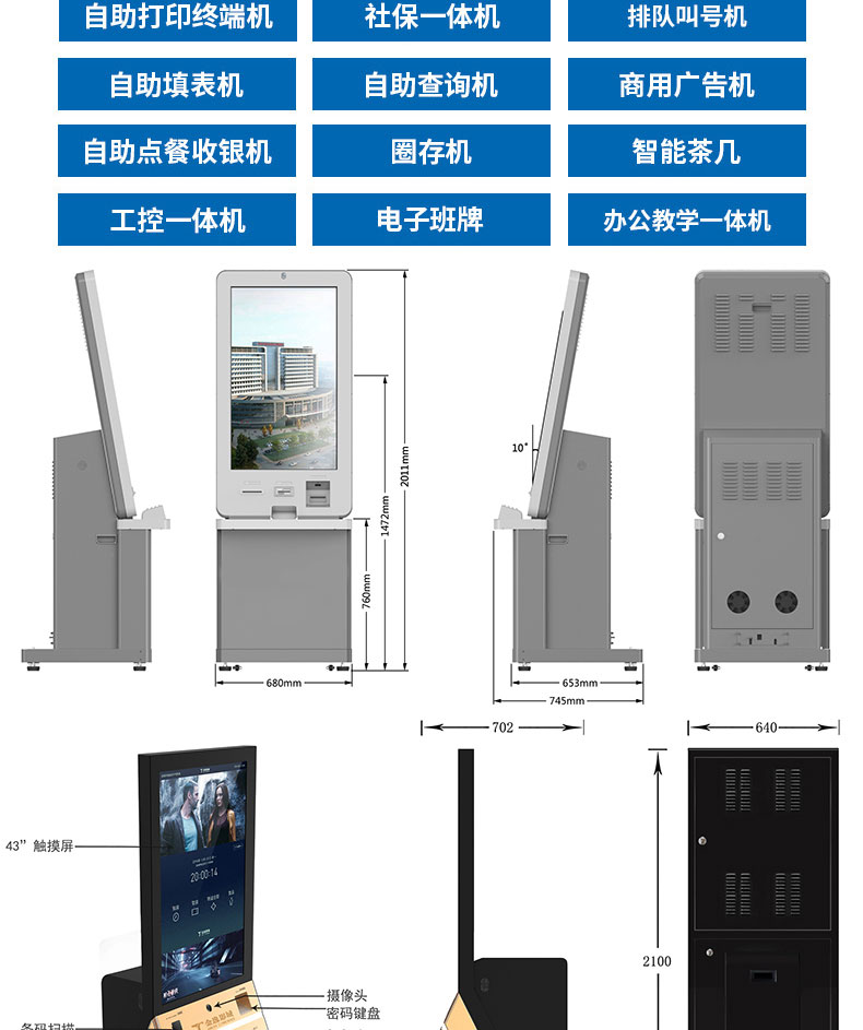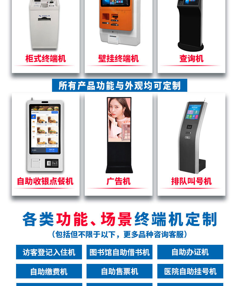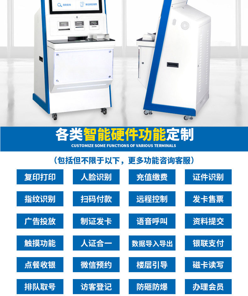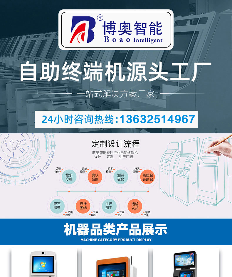 定制實用的自助終端設備,我們是專業(yè)。多種定制款式任意選擇,可根據(jù)需求定制外觀屏幕尺寸可選,配件數(shù)量可選,主機配置可選。