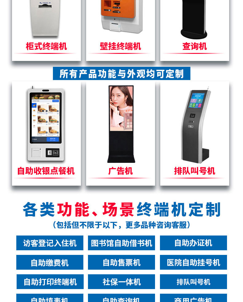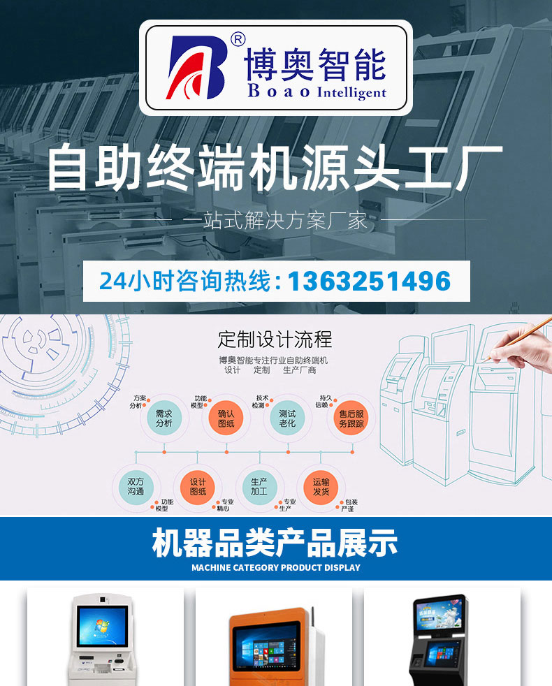 深圳市博奧智能科技有限公司專業(yè)提供自助終端機、觸摸查詢一體機、廣告機、液晶顯示器等產(chǎn)品的硬件、軟件研發(fā)與設(shè)計加工OEM/ODM等一站式服務(wù);我們一直秉承以產(chǎn)品質(zhì)量為核心、客戶至上、服務(wù)共贏為宗旨,為金融、醫(yī)療、教育、人工智能、政府工程項目、智慧城市、軌道交通、商業(yè)自助服務(wù)、廣告?zhèn)髅降刃袠I(yè)提供質(zhì)量過硬的產(chǎn)品和優(yōu)質(zhì)的服務(wù)。