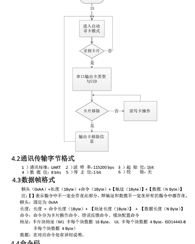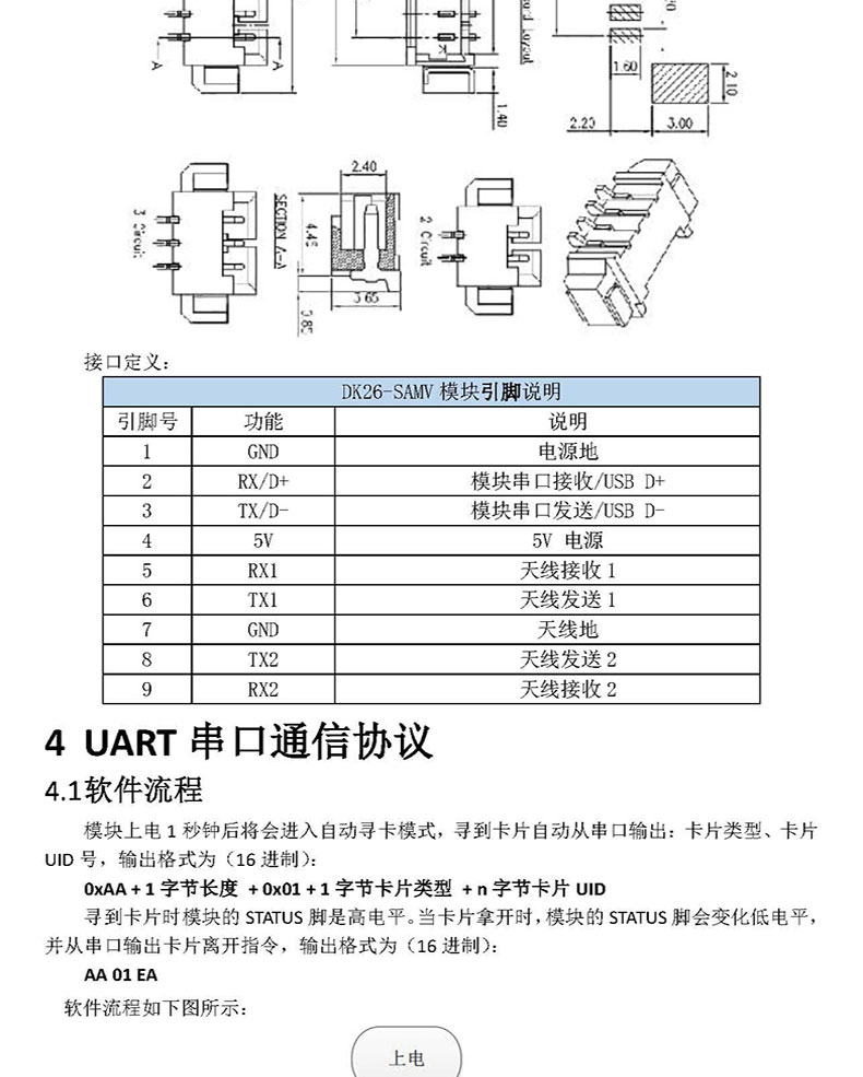 模塊采用 UART 通訊接口(可選 USB),兼容性好,通用性強(qiáng)。用戶通過(guò) UART 向模塊發(fā)送簡(jiǎn)單指令可實(shí)現(xiàn)對(duì)卡片進(jìn)行讀/寫操作,簡(jiǎn)單易用,用戶可使用該模塊高效快速開(kāi)發(fā)高頻讀寫功能產(chǎn)品。