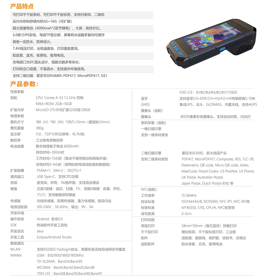 物聯(lián)工業(yè)智能便攜式手持一體機多功能PDA終端NFC不干膠標簽4G藍牙WIFI條碼支持定制