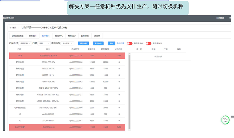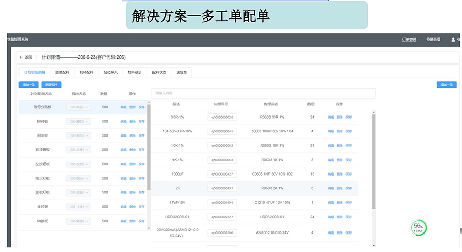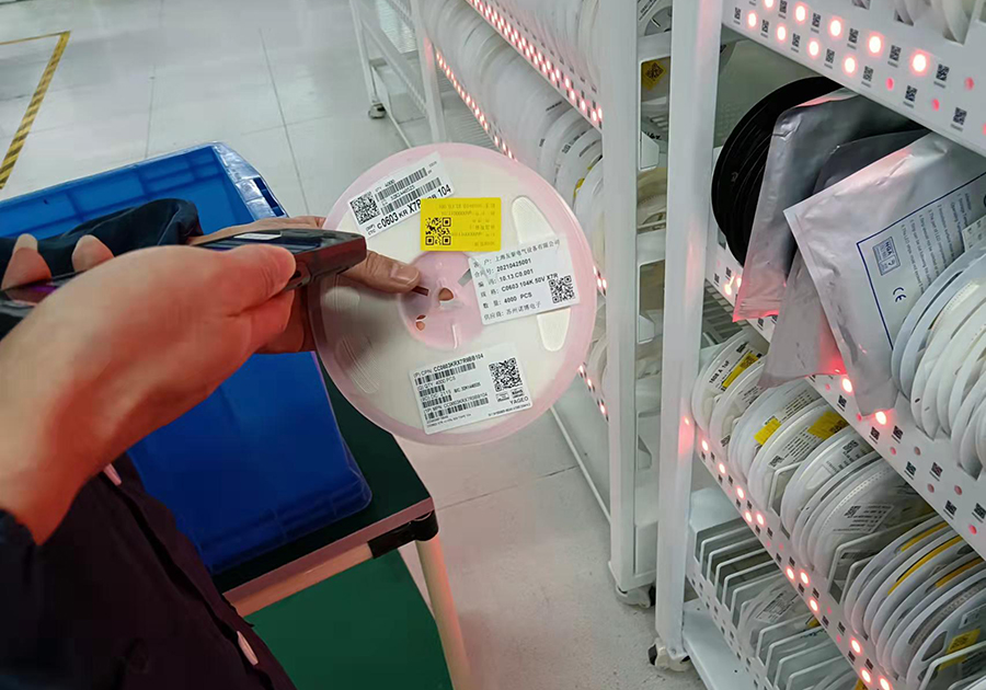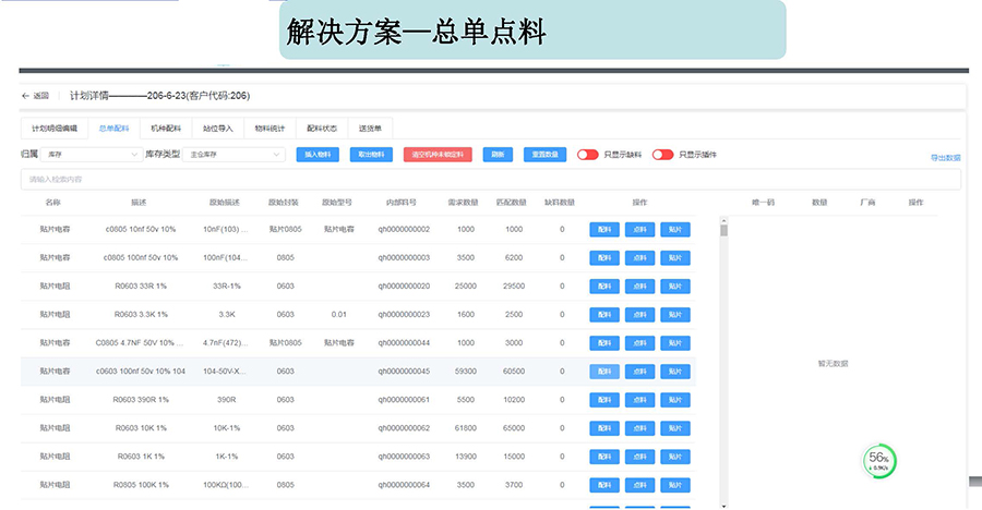 3.生成點料計劃,拿著物料檢索型號,自動點料、配料、標(biāo)識插件貼片。