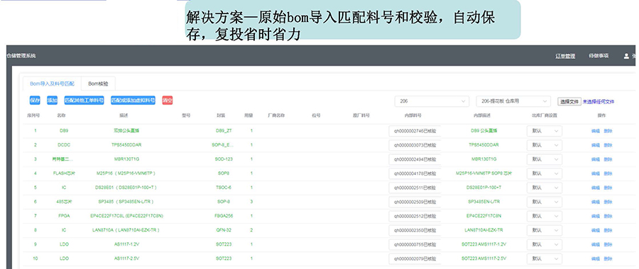 2.導(dǎo)入BOM,自動匹配料號,人工批量料號,復(fù)核料號。