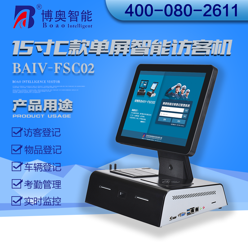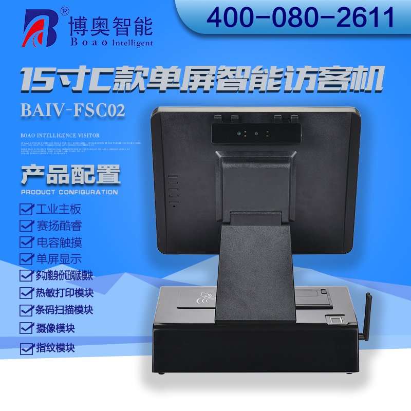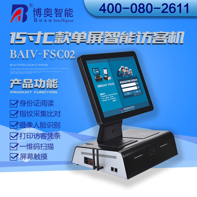 ? ? ??15寸C款單屏智能訪客機(jī)利用智能信息化訪客登記管理系統(tǒng),將目前手工填寫出入登記管理、電話咨詢被訪人等傳統(tǒng)方式轉(zhuǎn)變?yōu)楦呖萍嫉挠?jì)算機(jī)化、信息數(shù)字化處理,消除了手寫登記填寫時(shí)間長(zhǎng),容易出錯(cuò),信息缺失虛假多,不易保存,信息查詢困難等種種弊端;訪客登記管理系統(tǒng)能夠準(zhǔn)確快速的對(duì)來(lái)訪人員的證件、圖像、指紋等信息進(jìn)行識(shí)別登記并保存,以便日后查詢,同時(shí)利用聯(lián)動(dòng)功能,可以對(duì)進(jìn)出車輛自動(dòng)識(shí)別登記。