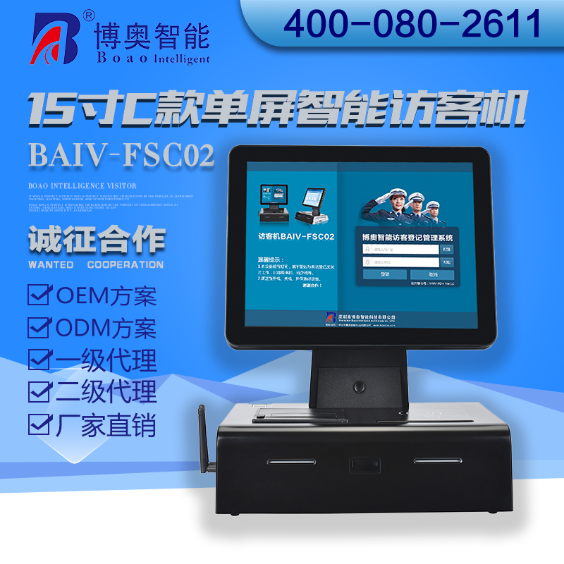 ? ? ? 15寸C款單屏智能訪客機(jī)控制核芯是博奧智能自主研發(fā)的工控主板,達(dá)到工業(yè)級(jí)要求