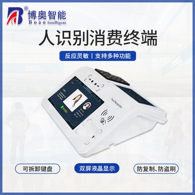 近些年,我司跟緊時(shí)代發(fā)展,充分了解市場(chǎng)需求后,決定在原有消費(fèi)機(jī)基礎(chǔ)上研發(fā)改進(jìn)新一代消費(fèi)機(jī),經(jīng)過技術(shù)工程師的日夜攻克以及充分的實(shí)驗(yàn)驗(yàn)證,全新的非接觸式IC卡的消費(fèi)機(jī)擴(kuò)展人臉識(shí)別消費(fèi)機(jī)正式面世。人臉智能+食堂消費(fèi)系統(tǒng)有效的解決了傳統(tǒng)的飯票或者飯卡丟失、補(bǔ)辦的繁瑣步驟,刷臉支付更為智能、廣泛、方便。而且人臉智能+食堂消費(fèi)更能凸顯作為機(jī)關(guān)單位與時(shí)代接軌的先進(jìn)性、高效性人臉識(shí)別消費(fèi)管理系統(tǒng)是當(dāng)前廣泛使用的收費(fèi)、食堂售飯系統(tǒng)。它采用了雙目結(jié)構(gòu)光,雙目200萬(wàn)寬動(dòng)態(tài)模組、雙目活體檢測(cè)人臉系統(tǒng),并結(jié)合現(xiàn)代管理方法設(shè)計(jì)而成。具有免接觸,無(wú)損耗,技術(shù)先進(jìn),系統(tǒng)擴(kuò)張性好,無(wú)需維護(hù),投資一步到位等優(yōu)點(diǎn),避免了因接觸IC卡的讀寫、油污、芯片裸露等缺陷造成的各種故障。是取代磁卡,無(wú)接觸式人臉的收費(fèi)機(jī),是廣大學(xué)校,企事業(yè)單位提高管理水平,實(shí)現(xiàn)電腦化的優(yōu)先選擇。