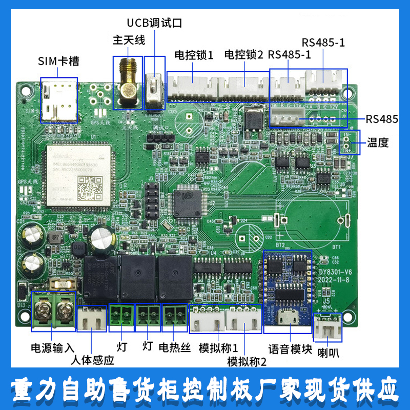 重力柜4G主控板人體感應(yīng)智能語音播報售貨機免費提供開發(fā)指令集自助販賣機自動稱重控制板套件按需定制 免費開發(fā)工業(yè)控制 智能電器物聯(lián)家居主控PCBA方案硬件電路板