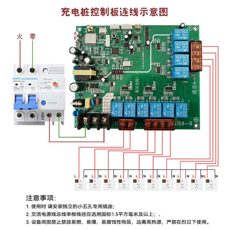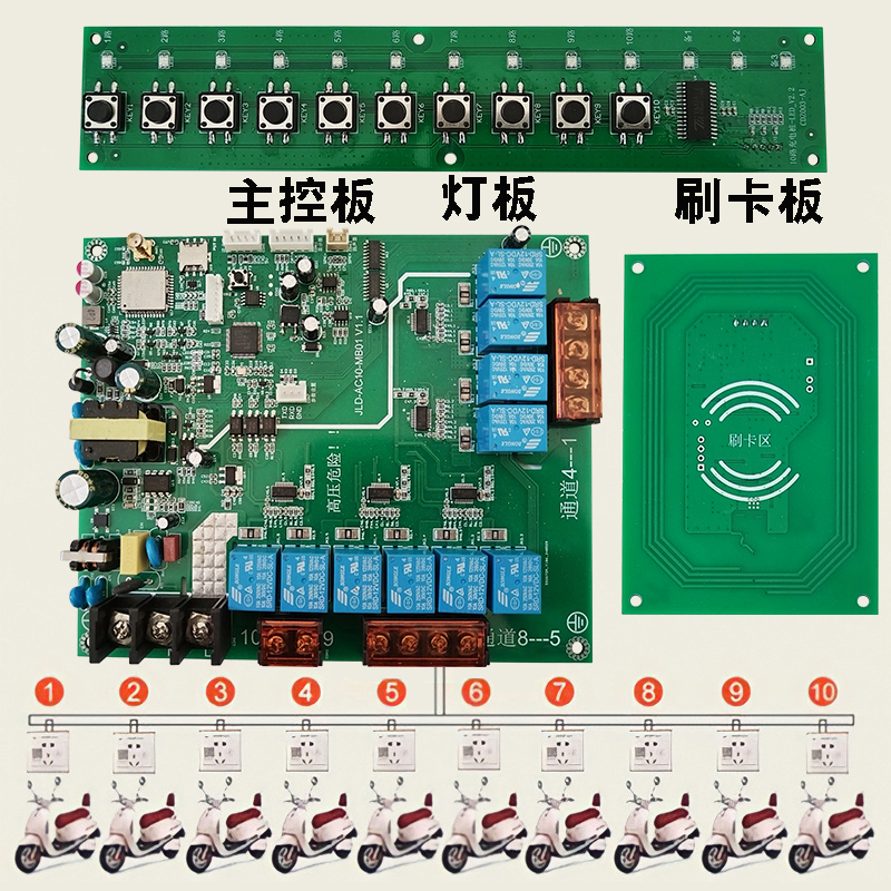在接線方面,需確保輸入電源火線、零線、地線正確連接,輸出端口按標(biāo)號(hào)順序接入充電設(shè)備,避免交叉接駁。主控板廣泛適用于老舊小區(qū)改造、商業(yè)綜合體及政府民生工程等場(chǎng)景,兼容性強(qiáng),支持現(xiàn)有電力系統(tǒng)升級(jí),是電瓶車充電的理想解決方案。
